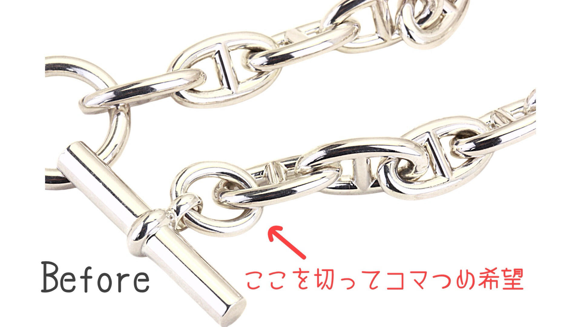 エルメス「シェーヌダンクル」ブレスのコマ詰め加工