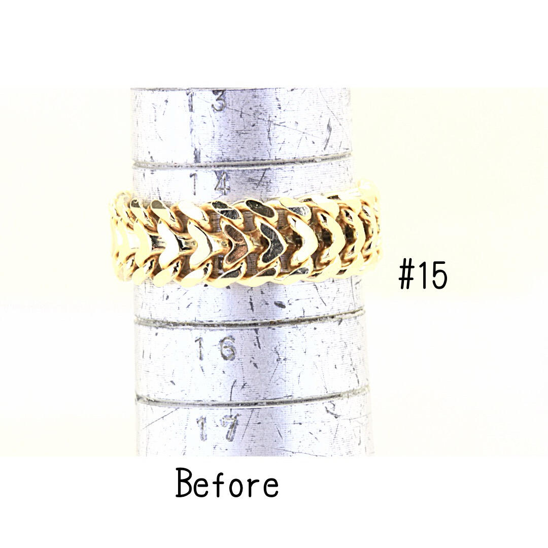 希望のサイズは#12前後でしたが、ひとコマ抜くとサイズが#15→#13と近くなりましたので、コマを抜きロー付け加工して調整させて頂きました。
