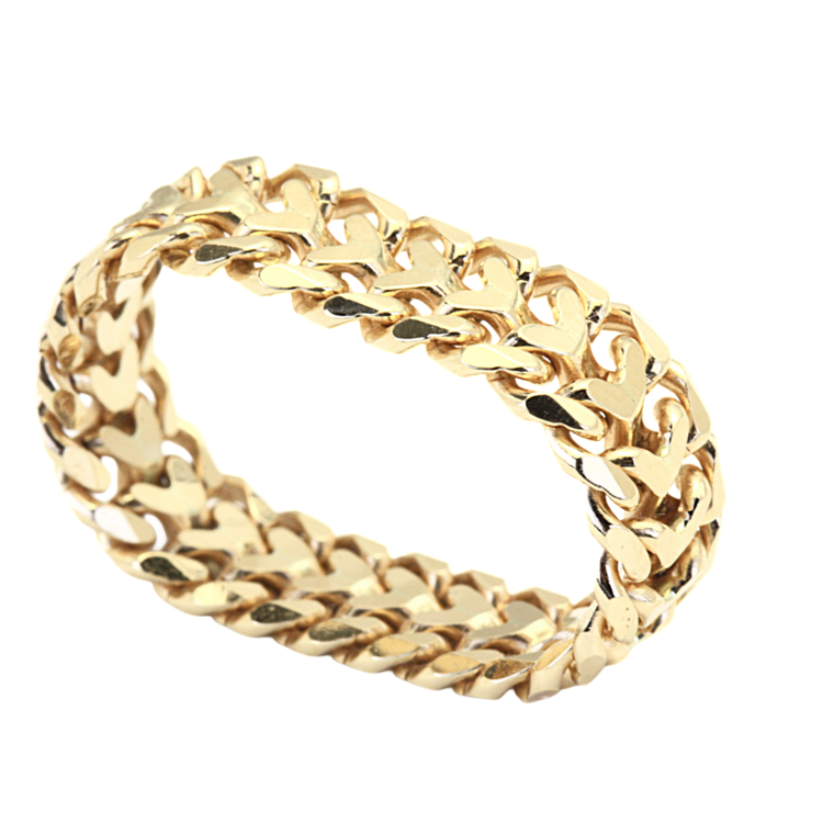 変形タイプの喜平チェーンが組み合ってできているチャーンリングですが、サイズダウン加工しました。