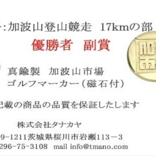 ニュース2025.12.09 Tweet ニュース 2025秋「加波山登山競争」優勝者副賞を進呈させて頂きました!! さる11/29土に桜川市にて「加波山登山競争・秋」が晴天の中,開催されました。今回も遠方からエリートランナーが(TJAR2022年6位の貝瀬さん始め)はるばる参加頂いたそうです。総勢七十数名...タナカヤでは、毎回優勝者副賞を進呈させて頂いております。今年は男子の部には,加波山市場のゴルフマーカー(磁石付き),女子の部には合格ストラップを進呈させて頂きました。益々人気の大会になる事を願っています。